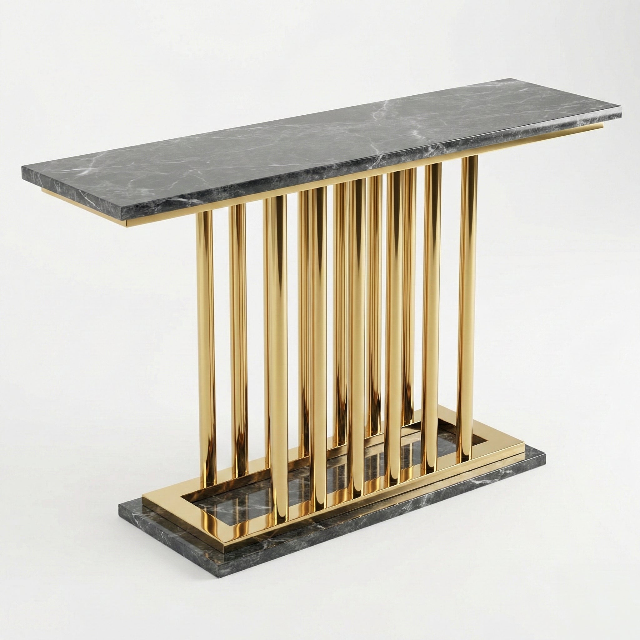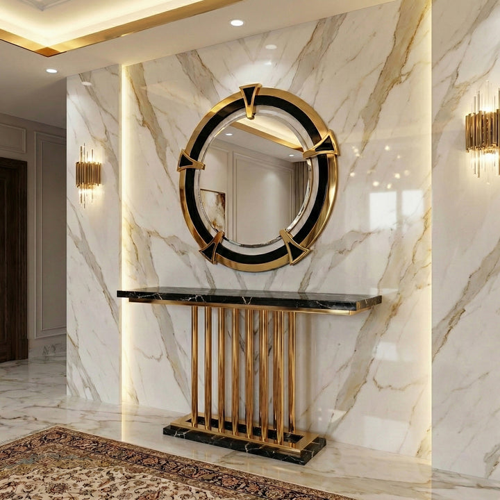 This console is a statement of luxury and functionality, perfect for enhancing contemporary interiors. Its durable materials and high-quality finishes make it a lasting addition to your home decor.